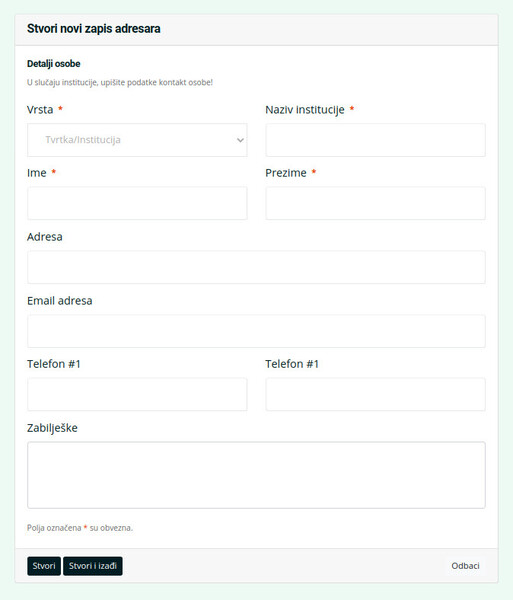 Popunite polja osnovnim podacima – polja označena zvjezdicom (*) su obavezna.