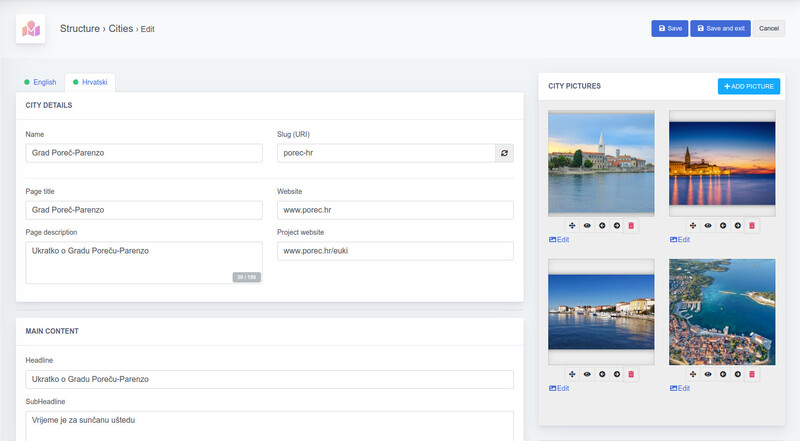 “Uredi detalje grada” - možete dodati informacije o svom gradu i objaviti fotografije. Dostupni jezici su engleski, hrvatski, srpski i bosanski jezik.