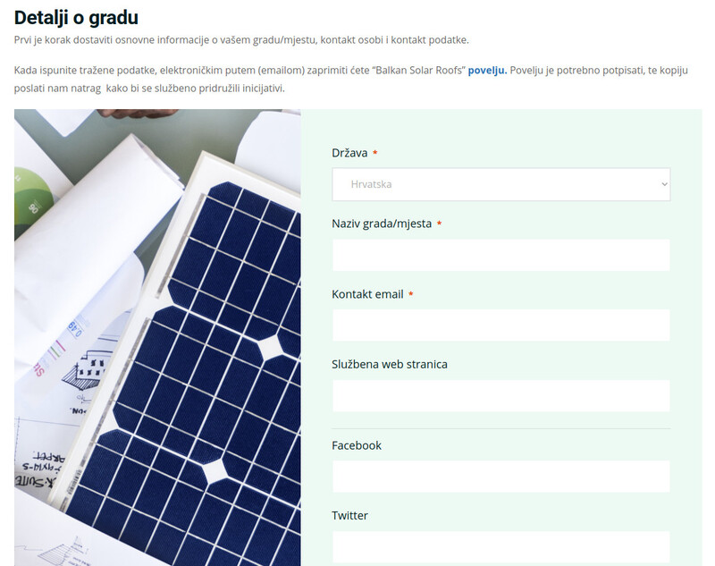 - kao predstavnici grada/mjesta, prvo se trebate prijaviti na službenoj internet stranici projekta “Balkan Solar Roofs”