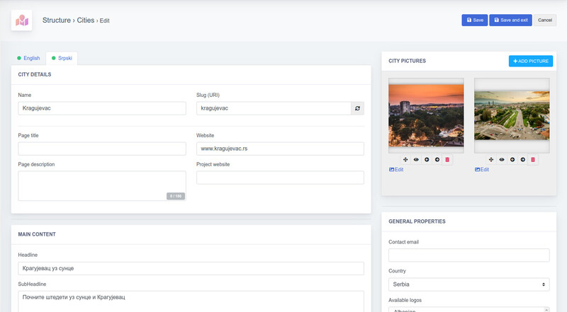 Ako kliknete na Uredi detalje o gradu, moći ćete da dodate informacije i o svom gradu na svom nacionalnom jeziku i da uključite fotografije svog grada. Imajte na umu da je to moguće učiniti na engleskom, hrvatskom, srpskom i bosanskom jeziku.