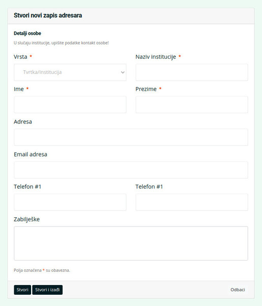 Moraćete da dodate sledeće detalje – postoji zvezdica za polja koja su obavezna za popunjavanje.