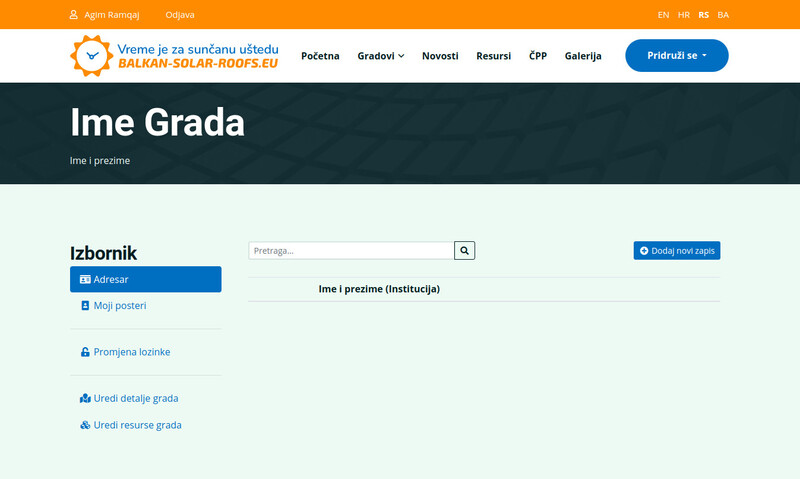Ako imate gradske zgrade ili građane koji žele da naprave poster svog solarnog krova i imaju dostupnu fotografiju visokog kvaliteta, imajte na umu da ćete prvo morati da kliknete na dodaj novi zapis u adresaru.