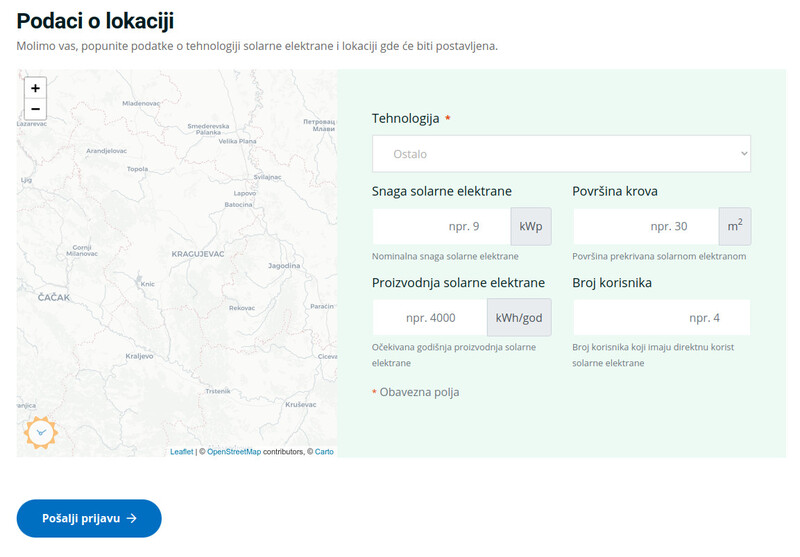 Ako ste građanin ili predstavljate lokalnu firmu ili udruženje, i želite da komunicirate o solarnom krovu koji ste instalirali na svom krovu, predlažemo da kliknete na padajuću opciju u gornjem desnom uglu i izaberete „Pojedinci“.